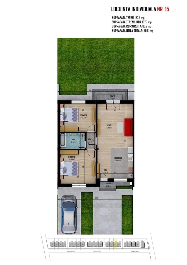 oferim spre vanzare ultima casa pe parter cu curte, 2 locuri parcare situate intr un complex rezidential fiind racordate la toate utilitatile. Se preda la cheie, gresie, faianta, centrala termica. Oferim creditare cu dobanda preferentiala comision 0. Vizionari oricand. Merita vazut!,