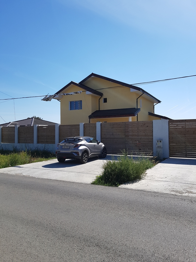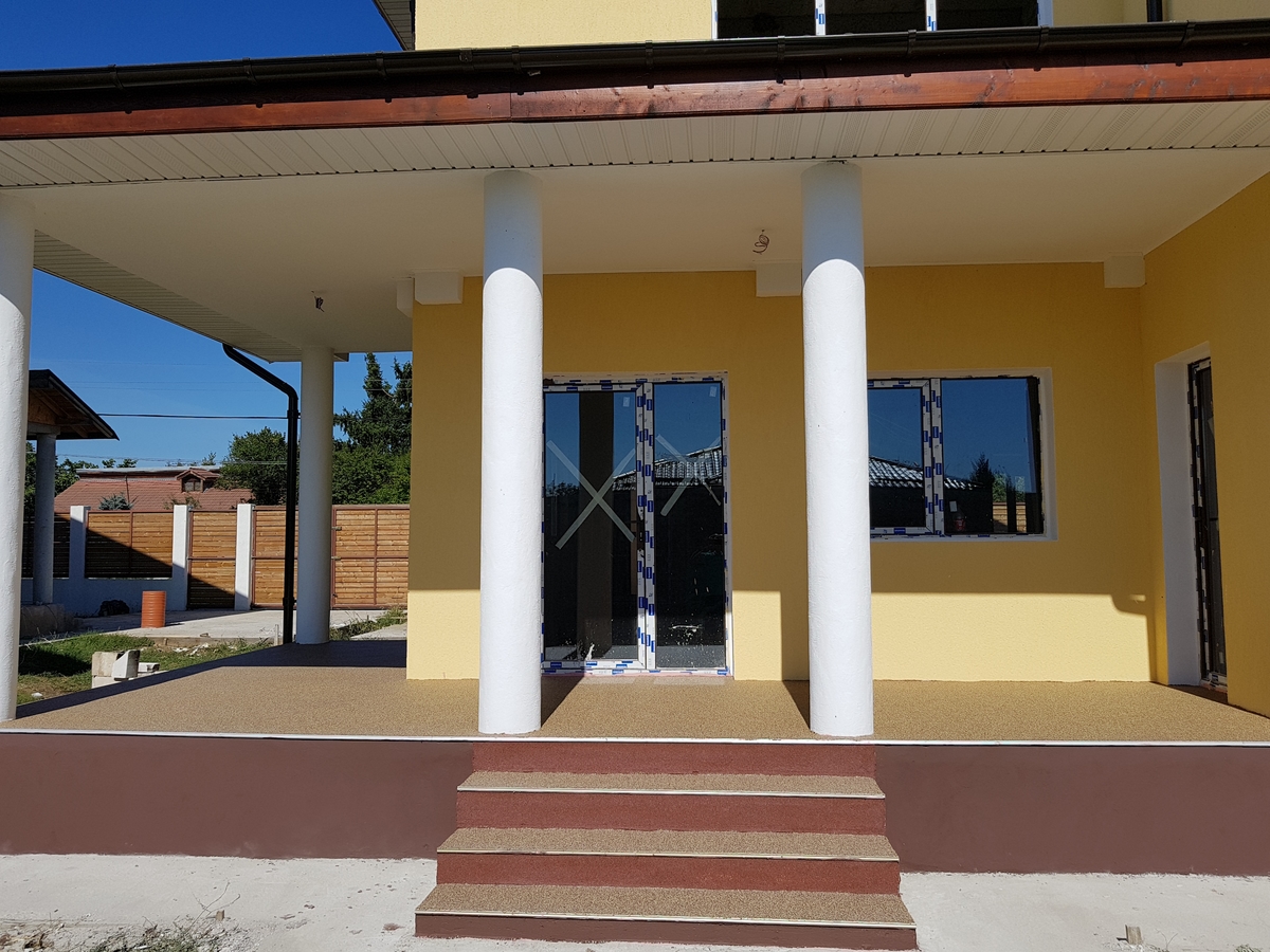 vila P+1, la gri (int. nefinisate), stradala la DJ, amprenra sol 124 mp, terase 31 mp, 2 bai, utilitati (gaze vizavi, curent in casa). Este construita conform normelor in constructii cu materiale certificate calitativ. Acte la zi, neg.,