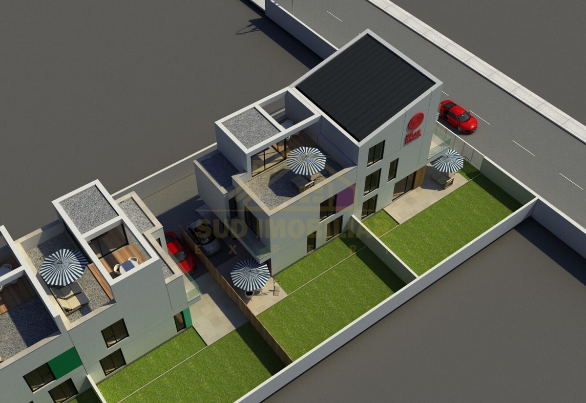 VILA in imobil P+1+TERASA ce face parte dintr-un ansamblu de 6 case individuale, pozitionata pe o strada destinata doar constructiilor de case cu regim mic de inaltime, cu acces rapid la soseaua oltenitei foarte aproape de primarie si a centrelor comerciale, scoli, gradinite, mijloace de transport in comun, etc.