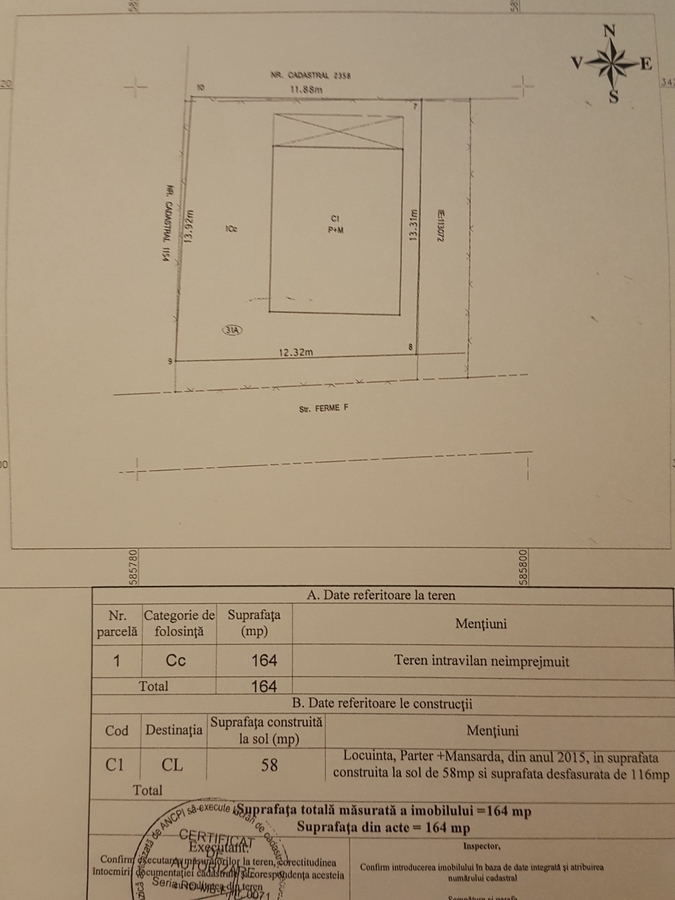 Optiuni interior: 2+ gr. sanitare Alimentare apa Beci/pivnita Camera serviciu Canalizare Centrala termica Izolatie termica Living Terasa