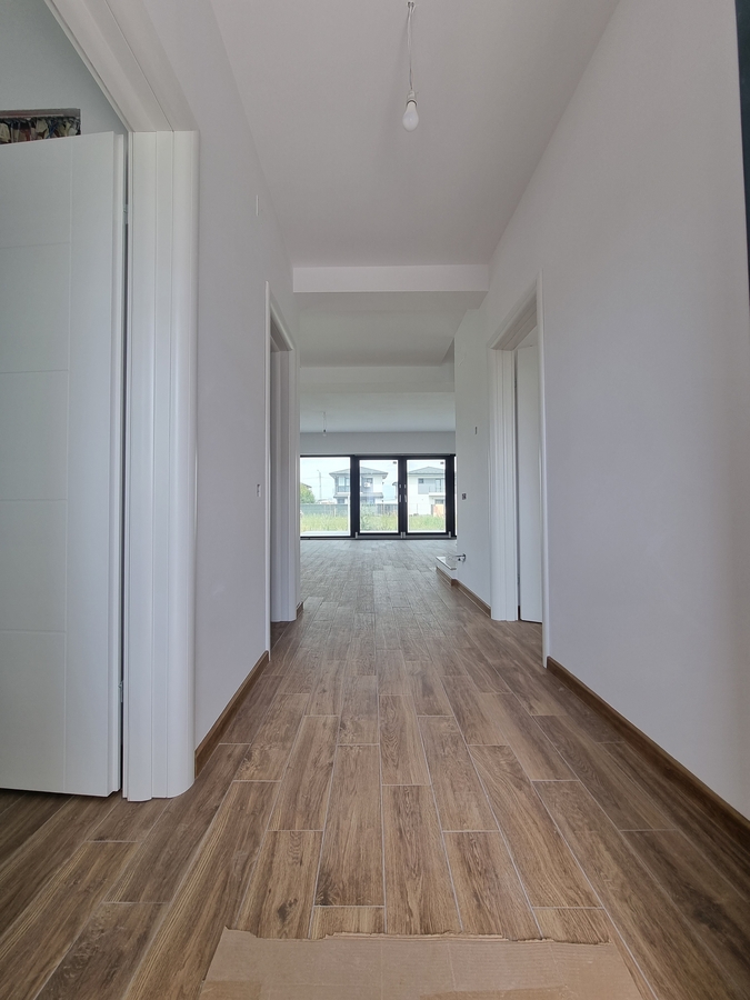 Parter: Bucatarie inchisa dar si cu posibilitate de open space, living generos si luminos cu iesire in terasa aflata in curtea din spatele casei, grup sanitar si spatiu de depozitare.