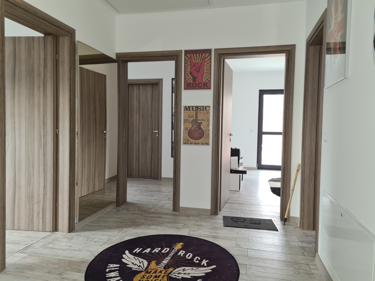 Imobilul are 5 camere. La etaj 3 dormitoare din care un dormitor matrimonial cu baie inclusa, doua dormitoare cu baie. La parter living cu acces terasa, dormitor/birou, bucatarie cu acces terasa, baie, camera tehnica si hol. Deasemenea, imobilul are subsol amenajat. La etaj mai sunt doua balcoane.