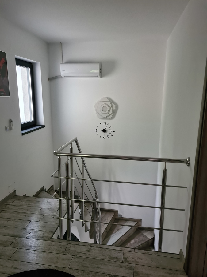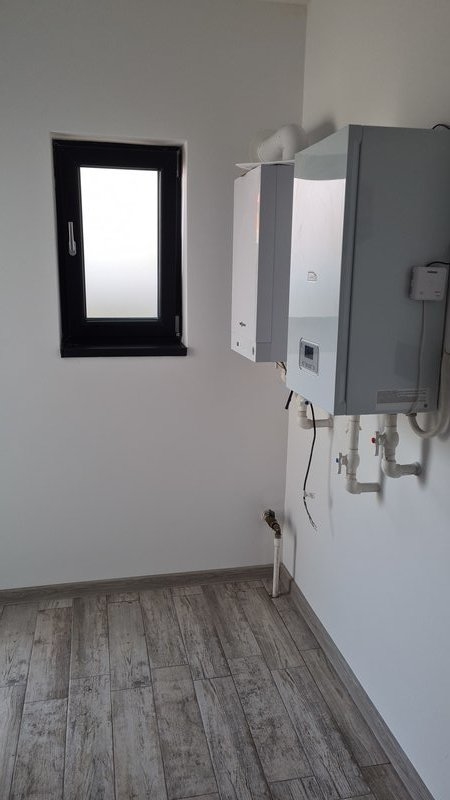 Imobilul este racordat la curent trifazic avand instalatie de incalzire in pardoseala pe ambele niveluri. Detine centrala termica pe gaz si centrala electrica. Tamplarie pvc Rehau cu geamuri tripan si feronerie Roto. Acoperis tabla Bilka.