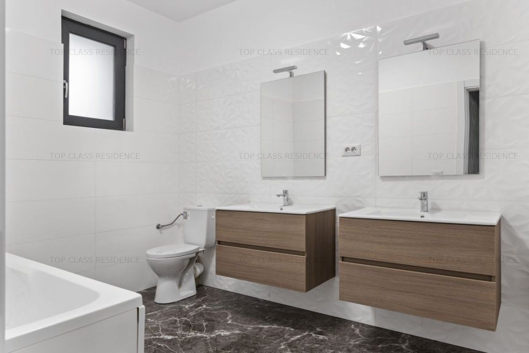 Pretul afisat include TVA de 9% si un loc de parcare cu numar cadastral propriu(pretul locului de parcare este de 6000euro si include TVA de 19%) si corespunde vilei care are curtea de aprox. 80mp.