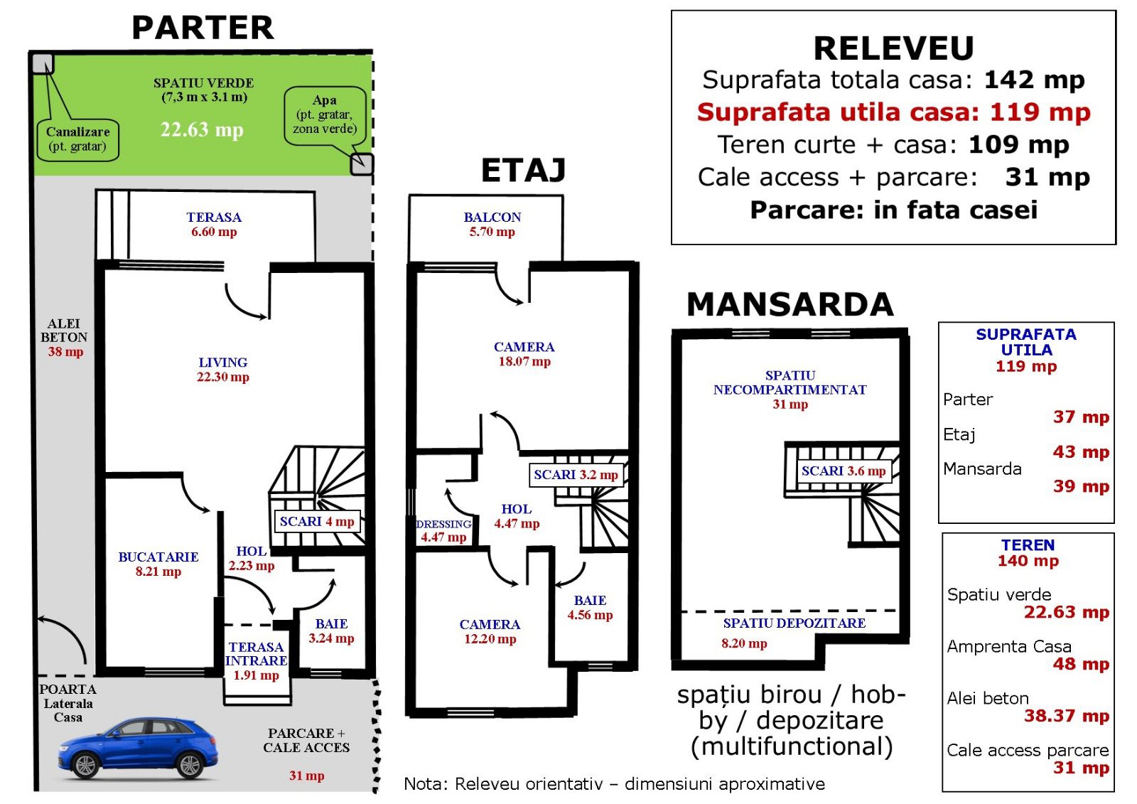 - suprafata utila de 119 mp si o compartimentare eficienta