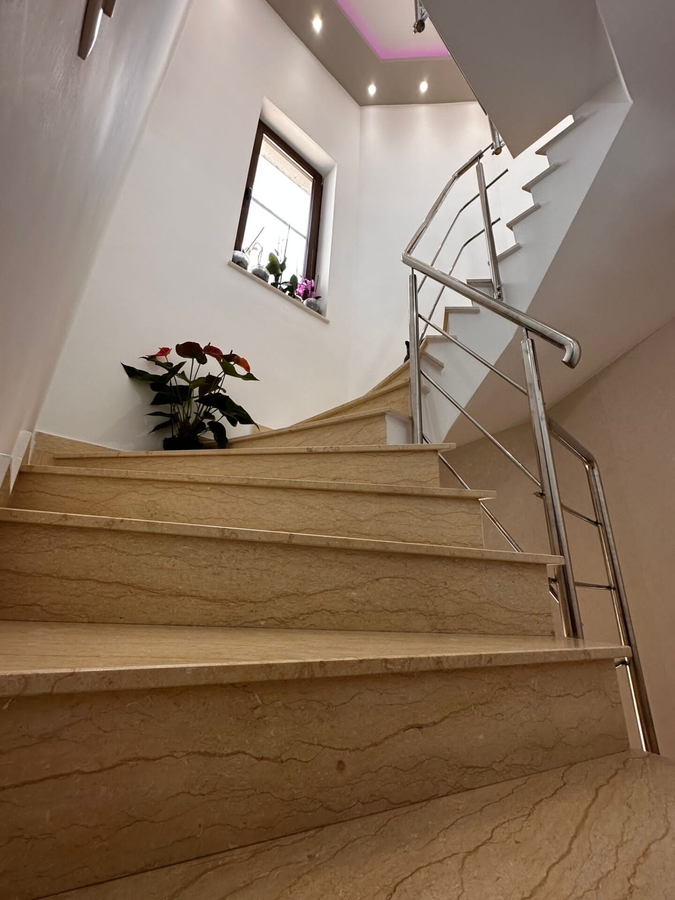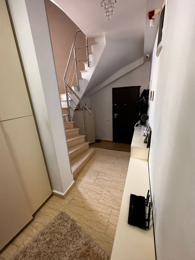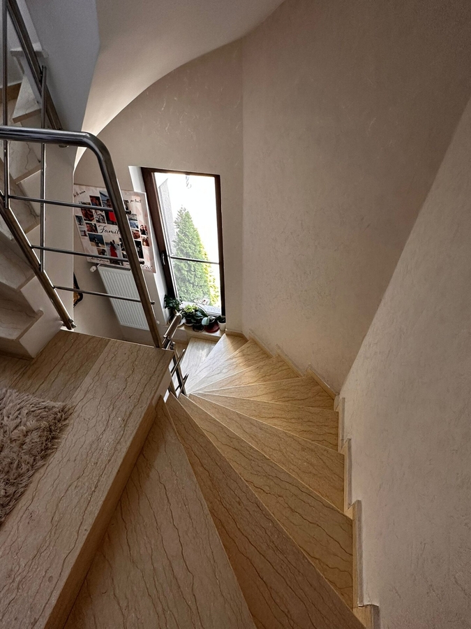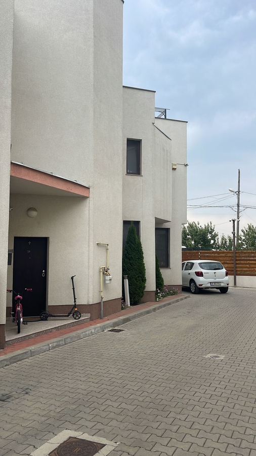 Vila individuala P+1+Terasa situata intr-un ansamblu rezidential de case-vile.Casa dispune pe parter de un living open space cu bucataria,o baie,un dormitor matrimonial cu acces pe balcon si un hol.In curte sunt plantati pomi fructiferi,gazon,pavele,este construit un foisor de 35 mp,magazie pentru depozitare,grup sanitar in interior,aer conditionat,incalzire in pardoseala,crama de 3 mp adancime,poarta intrare automata.Dispune de 2 locuri de parcare.Casa se preda complet finisata la cheie,mobilata,utilata.Pentru mai mlte detalii va invitam la vizionare.