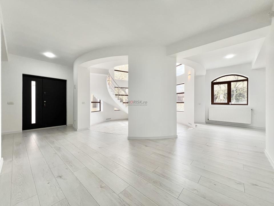 O proprietate unicat, construita in jurul unui living circular cu dubla inaltime, in care forma, lumina si volumul creeaza o experienta rar intalnita pe piata rezidentiala din Bucuresti.