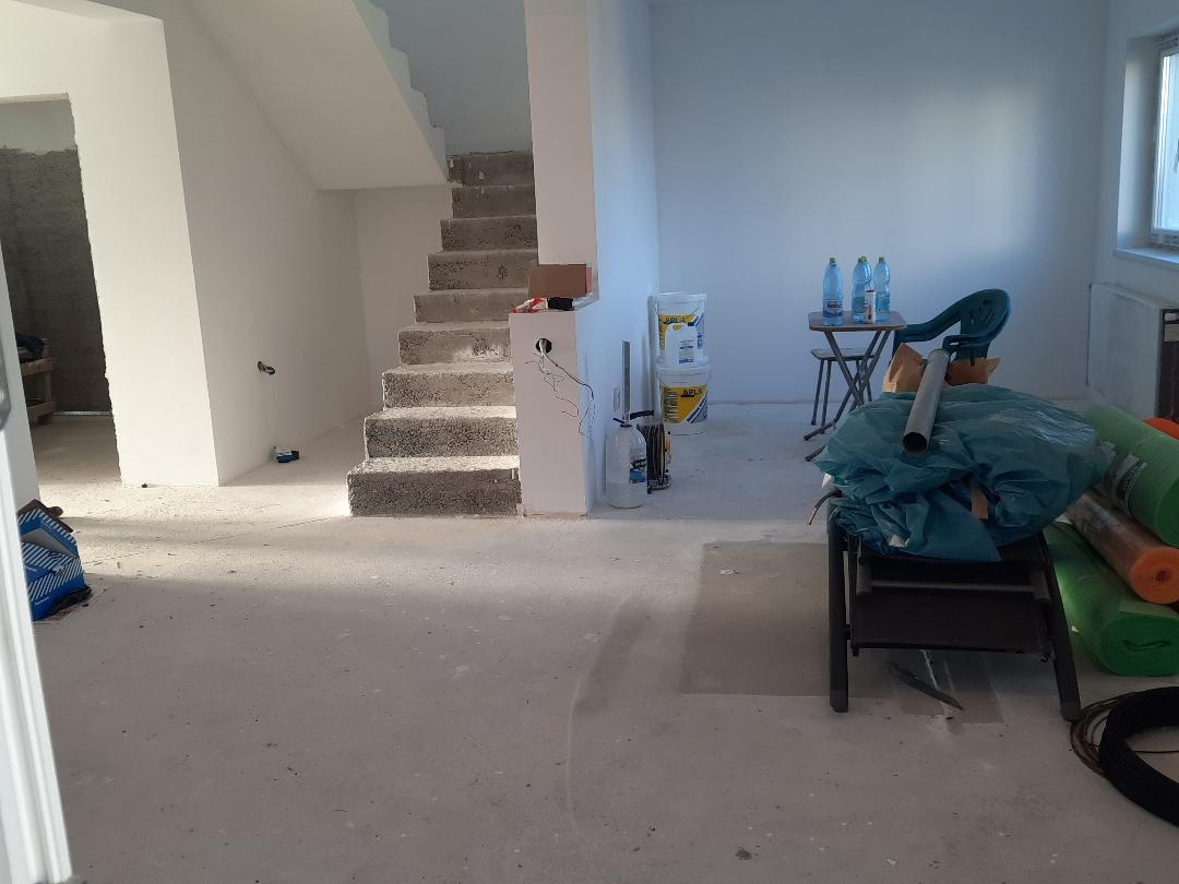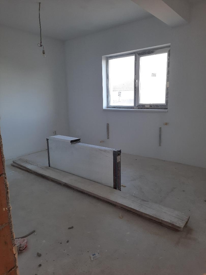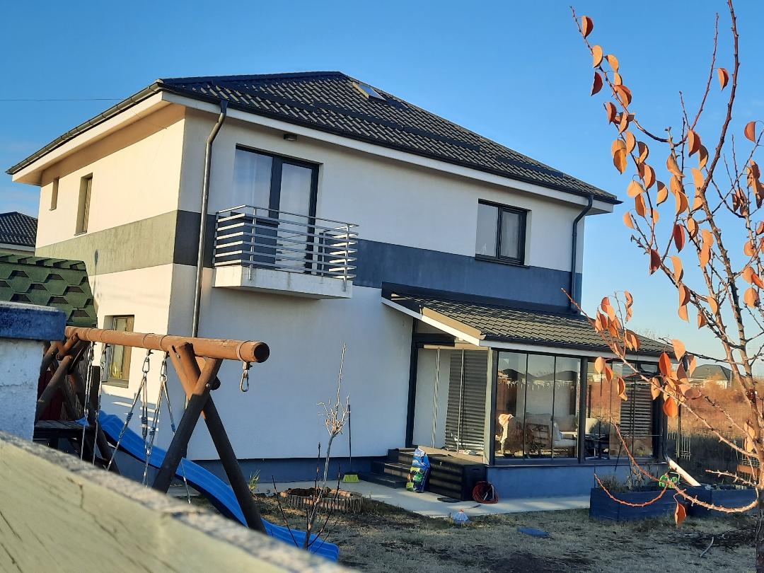 FARA COMISIOANE in Sabareni cu 2 drumuri de acces si 2 intrari, iluminat stradal, drum de 7m pavat cu piatra in CARTIER de case, casa construita din caramida Poroterm si acoperita cu tabla tip Lindab, izolata la exterior cu Polistiren de 10cm + izolatie cu vata minerala la pod, posibilitate de depozitare in pod cu ajutorul unei scari pliante, casa dispune de 5 camere si 2 bai(un dormitor la parter si 3 dormitoare la etaj), se preda gata finisata la cheie cu posibilitatea de alegere a finisajelor(gresie, faianta, parchet, obiecte sanitare, usi de interior, centrala), timplarie Tripan, usa metalica, terasa amenajata cu beci sub terasa, curte amenajata cu alei betonate, gard, porti de acces pietonal si auto, se preda bransata la gaze, curent, put cu hidrofor si fosa. Se accepta si credit ! Pentru mai multe detalii si vizionare ne putem auzii la telefon in fiecare zi, de luni pina duminica intre orele 09 - 21.