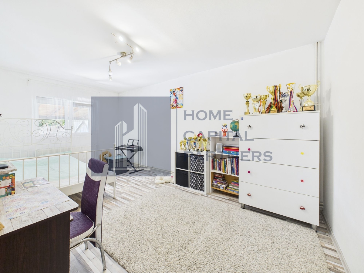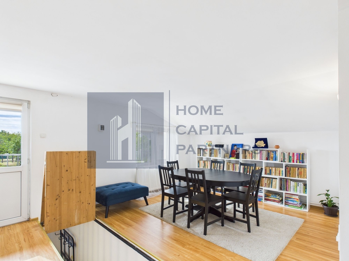 Proprietatea are un living spatios si luminos, 5 dormitoare potrivite pentru intreaga familie, bucatarie inchisa complet mobilata si utilata, 2 bai si o mansarda cu o zona de relaxare ideala pentru home office, biblioteca sau spatiu de joaca.