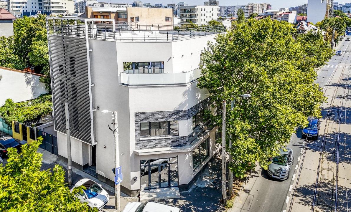 Constructia finalizata in anul 2020 are o suprafata utila de 940 mp, fara a include terasa generoasa de aproximativ 200 mp, si se distinge prin versatilitatea spatiilor, ceea ce ii permite noului proprietar sa ii atribuie multiple functiuni: restaurant, sala de evenimente cu bufet si laborator propriu, clinica de remodelare corporala, clinica medicala cu CT si radiologie (acces la curent 380 V), laborator de analize, farmacie la parter cu clinici la etaje, sediu bancar, companie de asigurari, birouri de avocatura sau notariat sau chiar apartamente moderne, in cazul reorganizarii pe functiune rezidentiala.