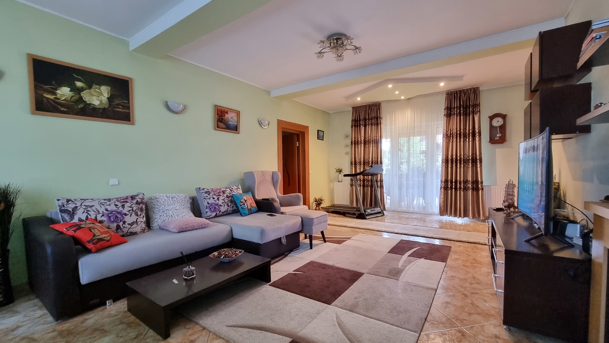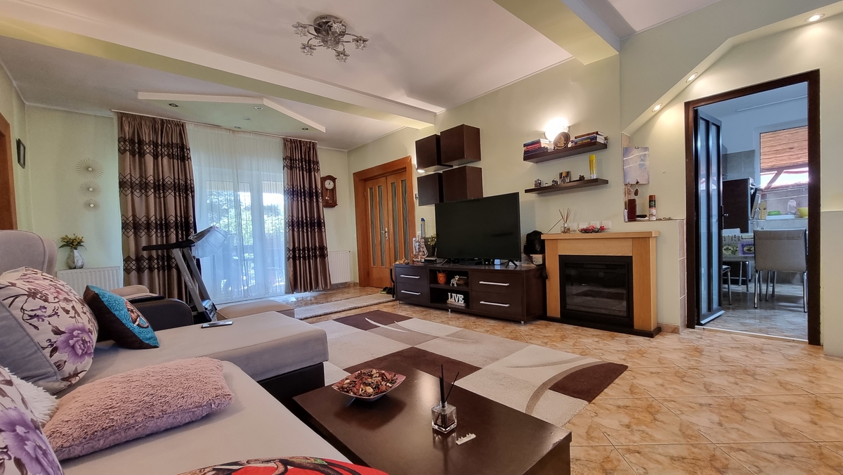 Locuinta este impartita astfel: parter cu intrare in hol, camera scarilor cu acces catre etaj dar si pivnita (suprafata foarte mare), acces etaj precum camera de zi. Din camera de zi, se poate ajunge direct pe terasa, dormitor cu baie proprie dar si balcon(care s-a transformat in birou/camera).