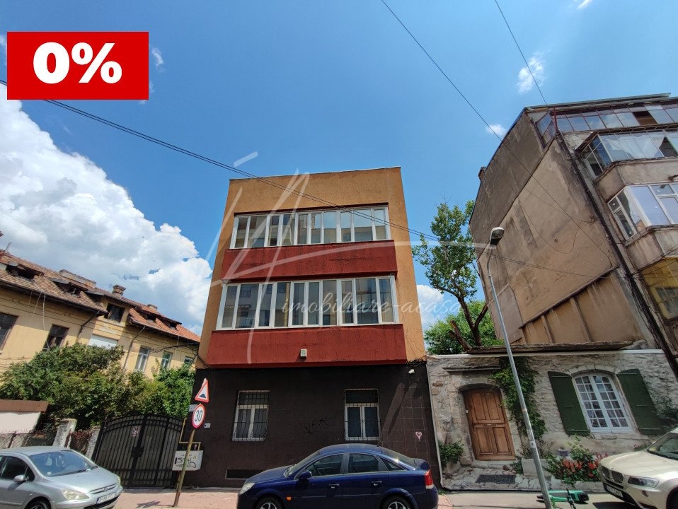 Cladirea este un mic bloc de 3 etaje inclusiv parter, cu un demisol si subsol foarte mari, dar si un pod care se poate transforma in spatiu util. De asemenea terenul cladirii este generos, cu posibilitatea amenajarii dupa nevoile noului proprietar, in functie de destinatia finala a cladirii.