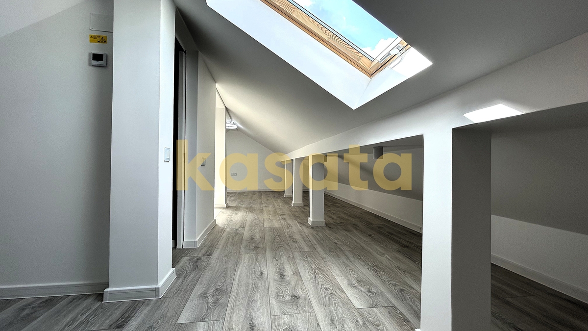 Compartimentarea este echilibrata si practica: 2 dormitoare, living generos, 3 bai si o mansarda complet amenajata, care adauga un spatiu valoros pentru birou, zona de relaxare sau dormitor suplimentar. Mansarda beneficiaza de incalzire in pardoseala, ferestre Velux, parchet SPC, instalatie electrica si sanitara trasa, izolatie cu vata si placare cu rigips – totul executat corect si atent.