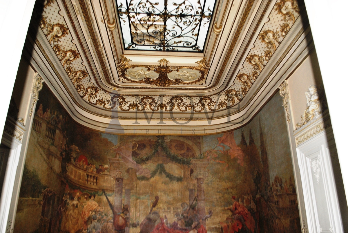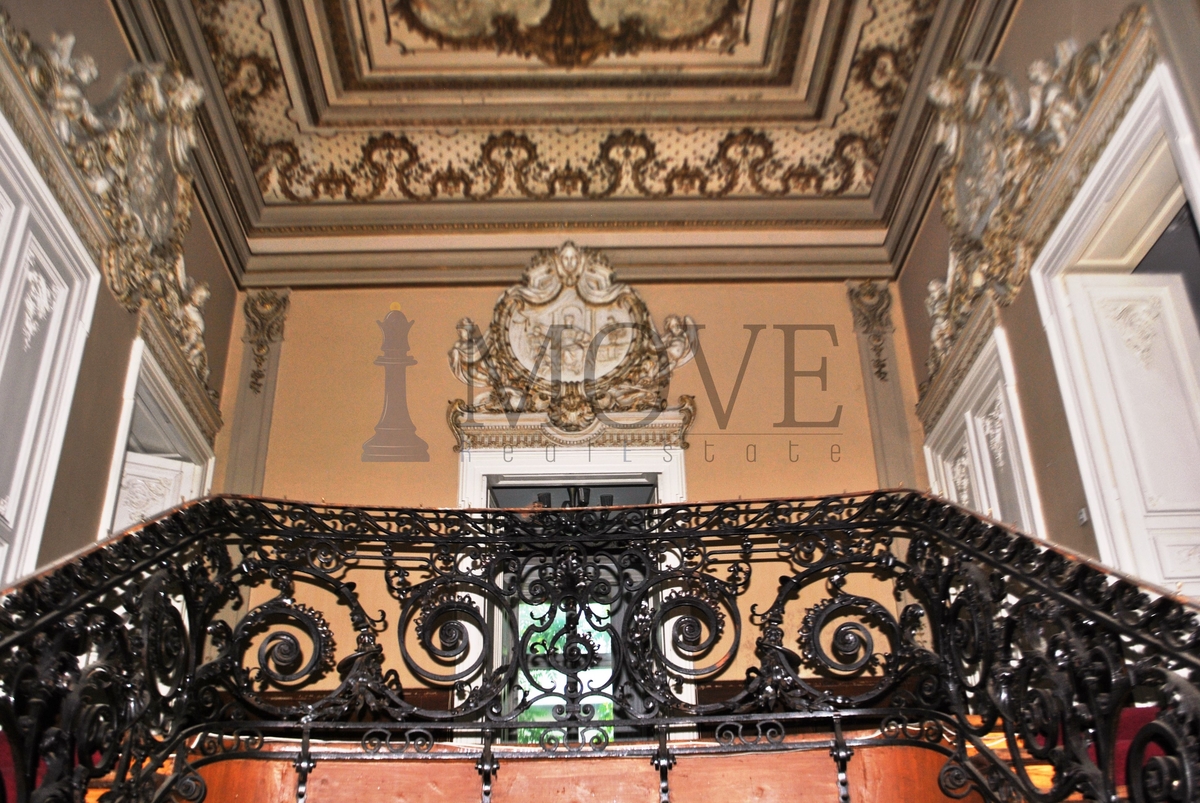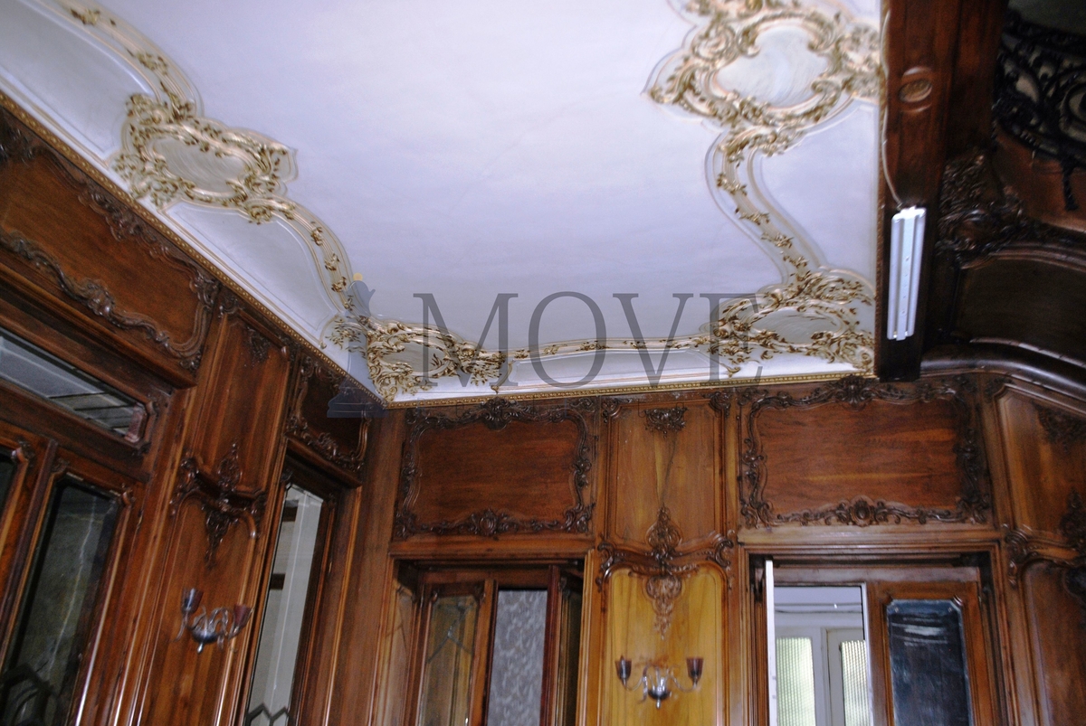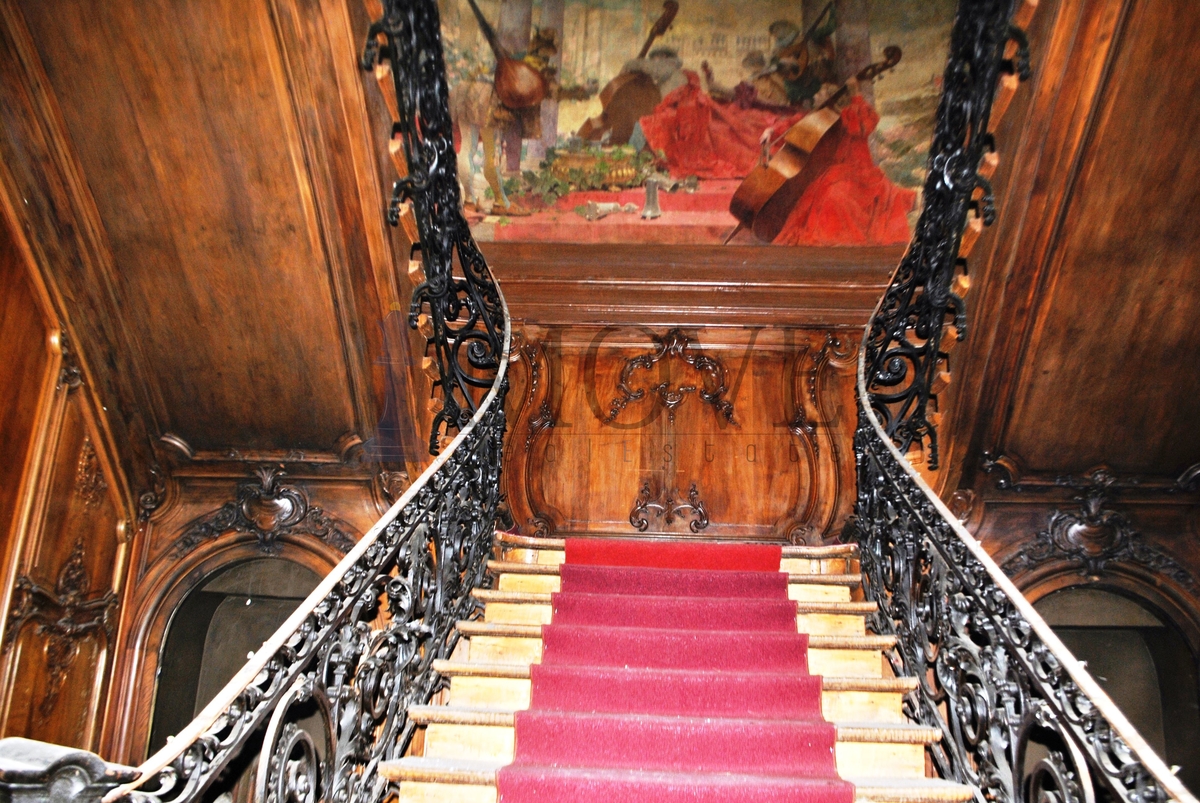 Intrarea fastuoasa, scarile combinate lemn cu balustrada de fier forjat, holul spatios imbracat pe pereti cu decoratiuni din lemn masiv de nuc, calorifere din fonta, usile pastrate impecabil, intrarea principala cu scari de marmura. Pictura din fata scarii realizata de pictorul Simon Alexandre Toudouze, pe panza si apoi lipita pe zid, aceeas procedura folosita la picturile din Ateneul Roman, nu este afectata nicidecum de ani.
