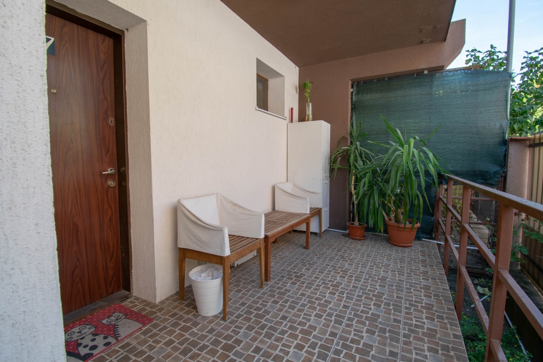 Casa dispune de o camera tehnica in curte, centrala proprie, put propriu pentru irigat gazon, aparate de aer conditionat si o curte generoasa de 200mp in forma de L care poate fi utilizata si pentru acces auto.Zona dispune de toate utilitatile, de la apa si canal, pana la curent electric si gaze naturale, iar casa este conectata la toate aceste utilitati.Pozitia cardinala SUD-EST.
