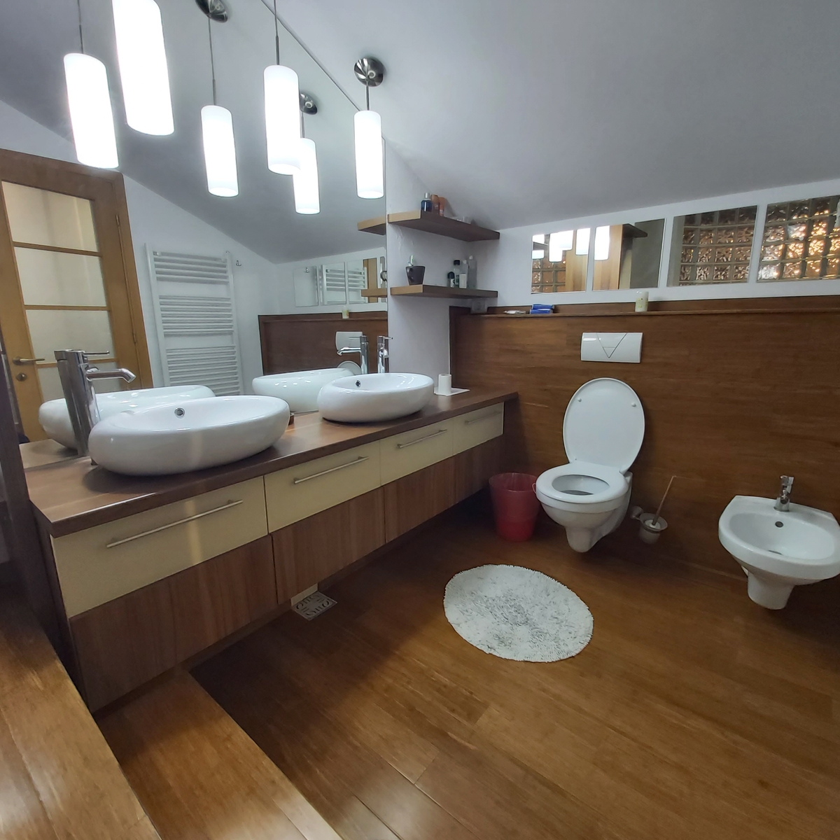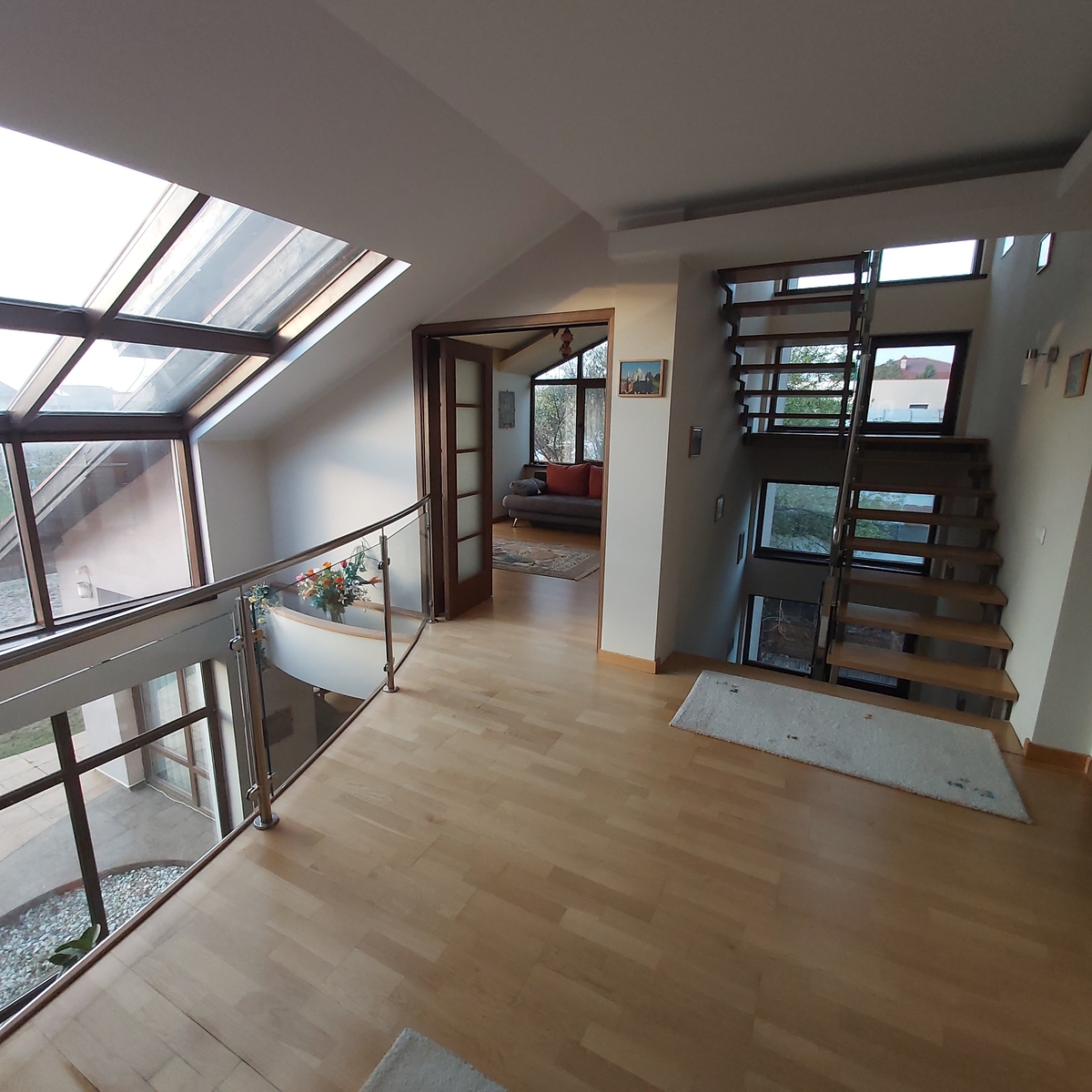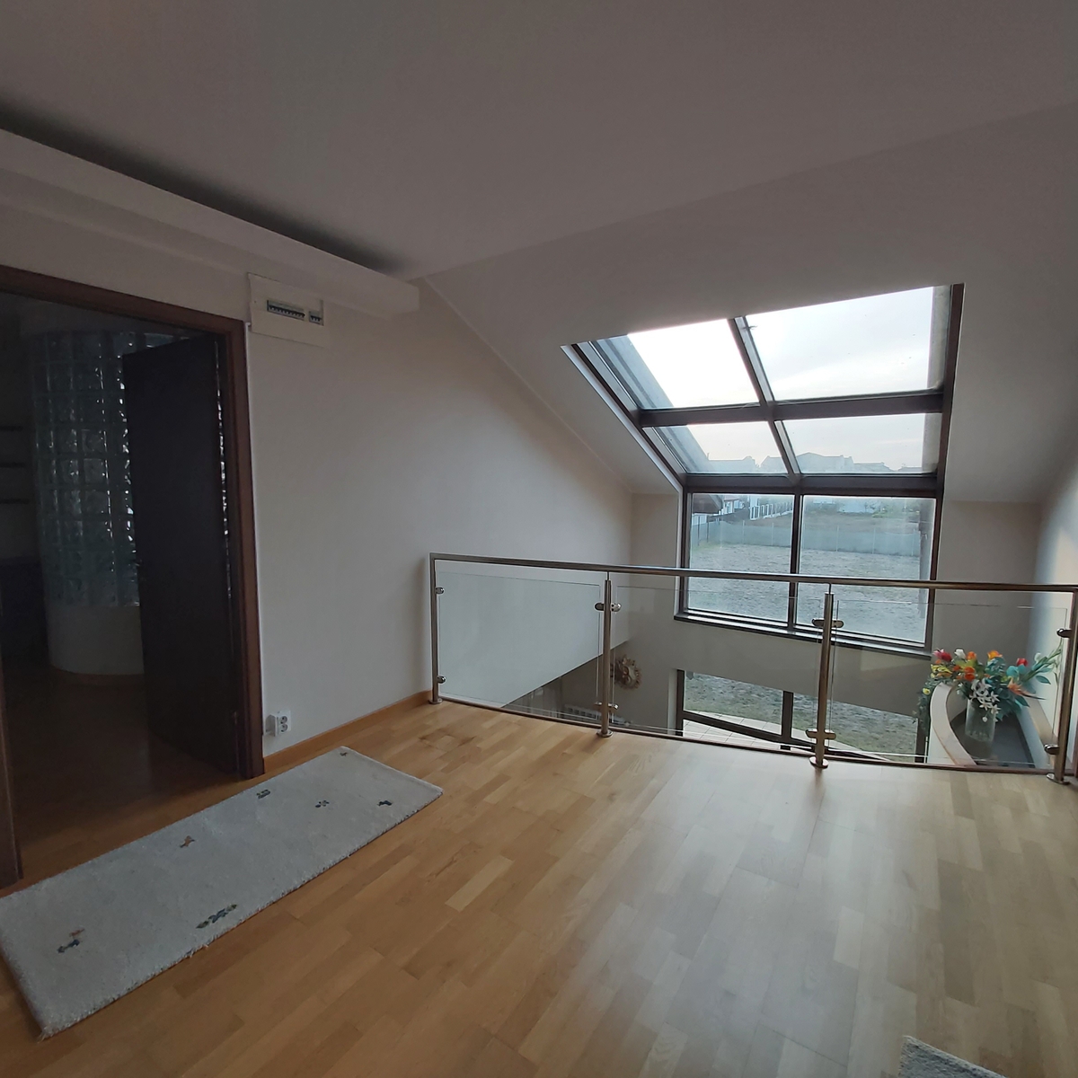 Cu un total de 3 dormitoare, 3 grupuri sanitare, 1 birou, 1 living, 1 bucatarie cu dinnig spatios, plus o camera (de joaca) open space la mansarda, proprietatea bifeaza toate cerintele unei locuite confortabile si moderne. Pretabila pentru o familie care isi doreste aer curat si liniste, intr-o zona exclusivista (zona de nord), cu acces facil si direct catre punctele de interes ale orasului.