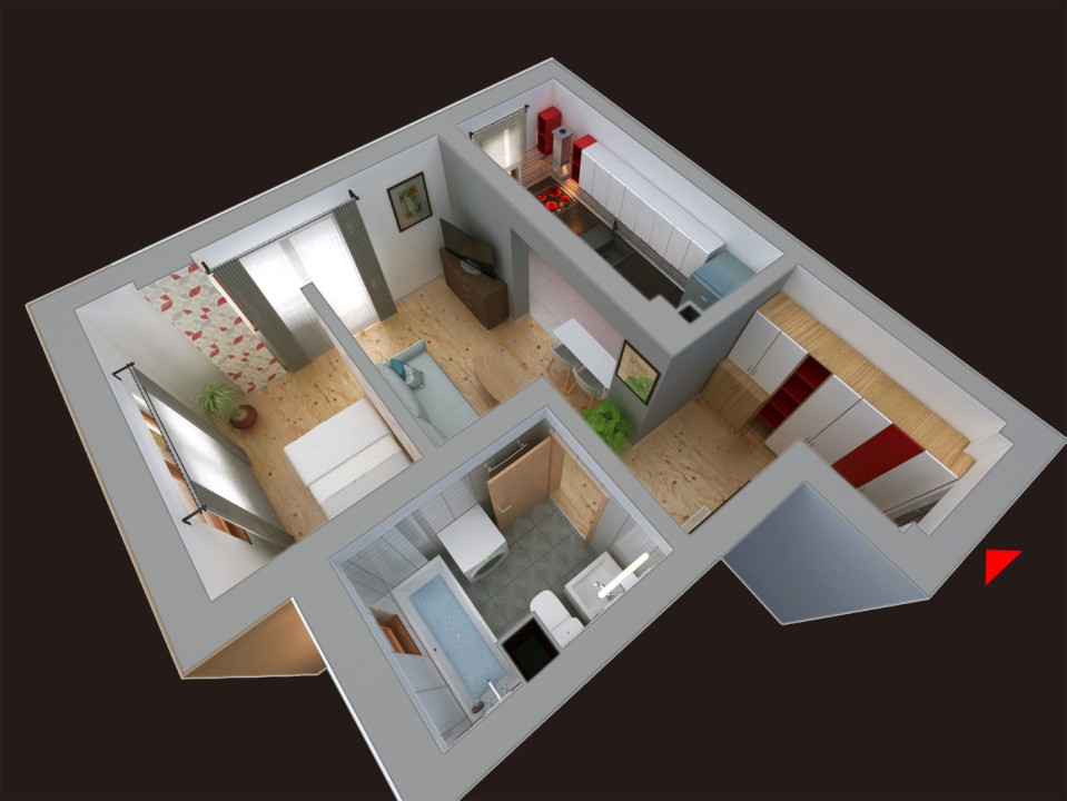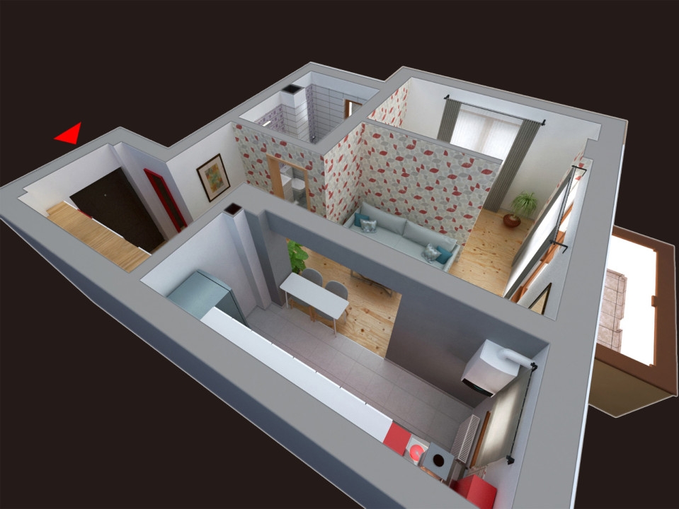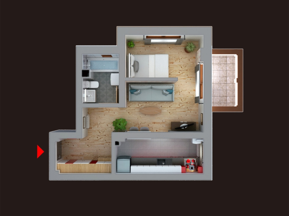 Alcatuita dintr-o camera si dependinte, tip garsoniera decomandat, suprafata utila 35 mp, suprafata construita 43 mp.