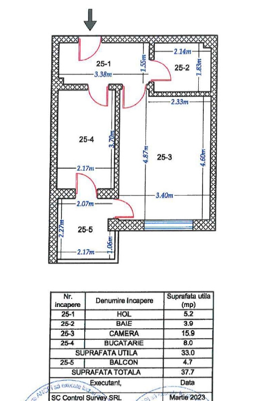 Optiuni interior: Apometre Balcon Centrala termica Contor gaze Izolatie termica Renovat recent Usa metalica