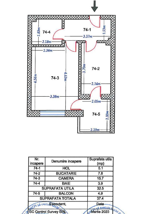 Optiuni interior: Apometre Balcon Centrala termica Contor gaze Izolatie termica Renovat recent Usa metalica