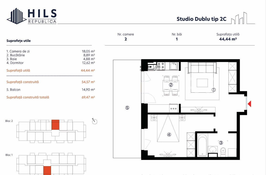 apartament tip studio, amplasat in Hils RTepublica, la 600 m de metrou Republica, Hala Laminor. Faza 1. Se vinde finisat in totalitate. Comision 0%. Nu colaborez cu agentiile imobiliare. Plus TVA.