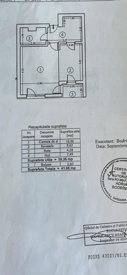 Suprafata utila: 39 + balcon inchis de 3 mp