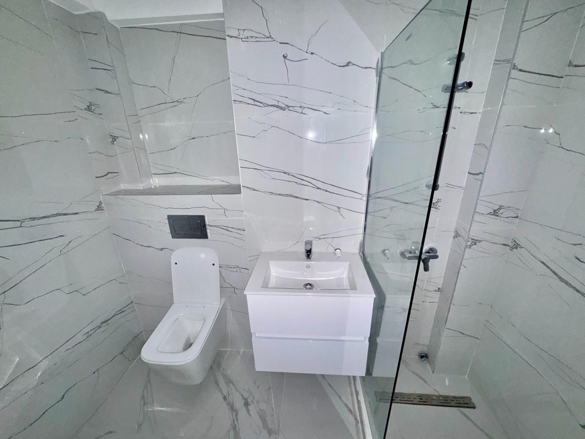 - Baia echipata cu dus practic, lavoar modern si mobilier cu spatii de depozitare eficiente