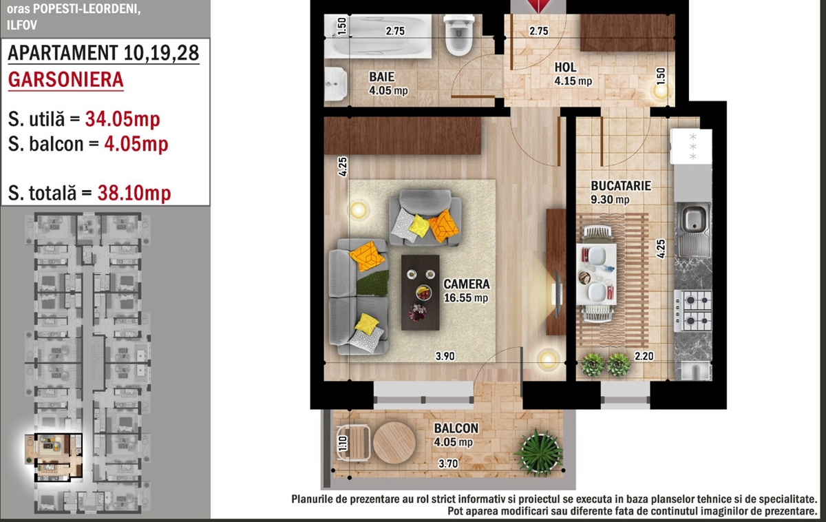 Aceasta garsoniera ofera o solutie de locuire moderna si eficienta intr-o locatie in plina dezvoltare. Pentru mai multe informatii sau pentru a programa o vizionare, va invitam sa ne contactati la numarul de telefon: 0731 510 854.