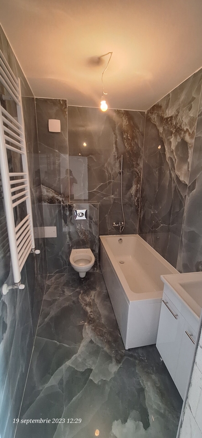 Finisata modern cu gresie,faianta, paerchet, termopan, centrala termica individuala.