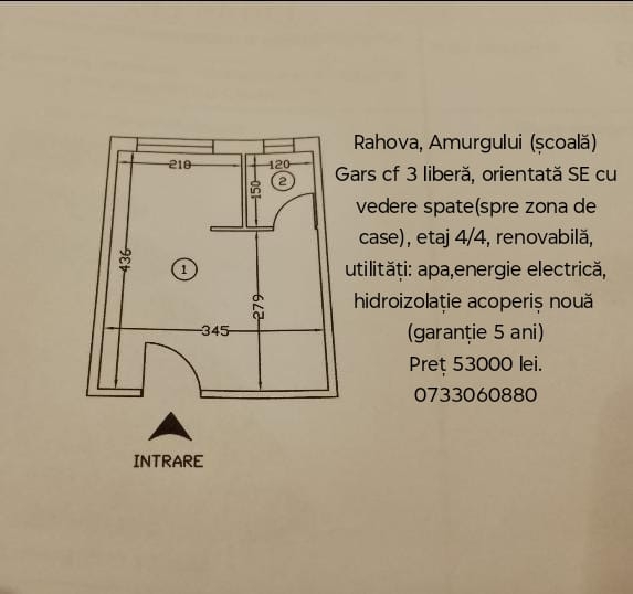 cf. 3, libera, orientata SE cu vedere spate (spre zona de case), renovabila, utilitati: apa, energie electrica, hidroizolatie acoperis noua (garantie 5 ani), palier inchis, vecini linistiti, comision zero,