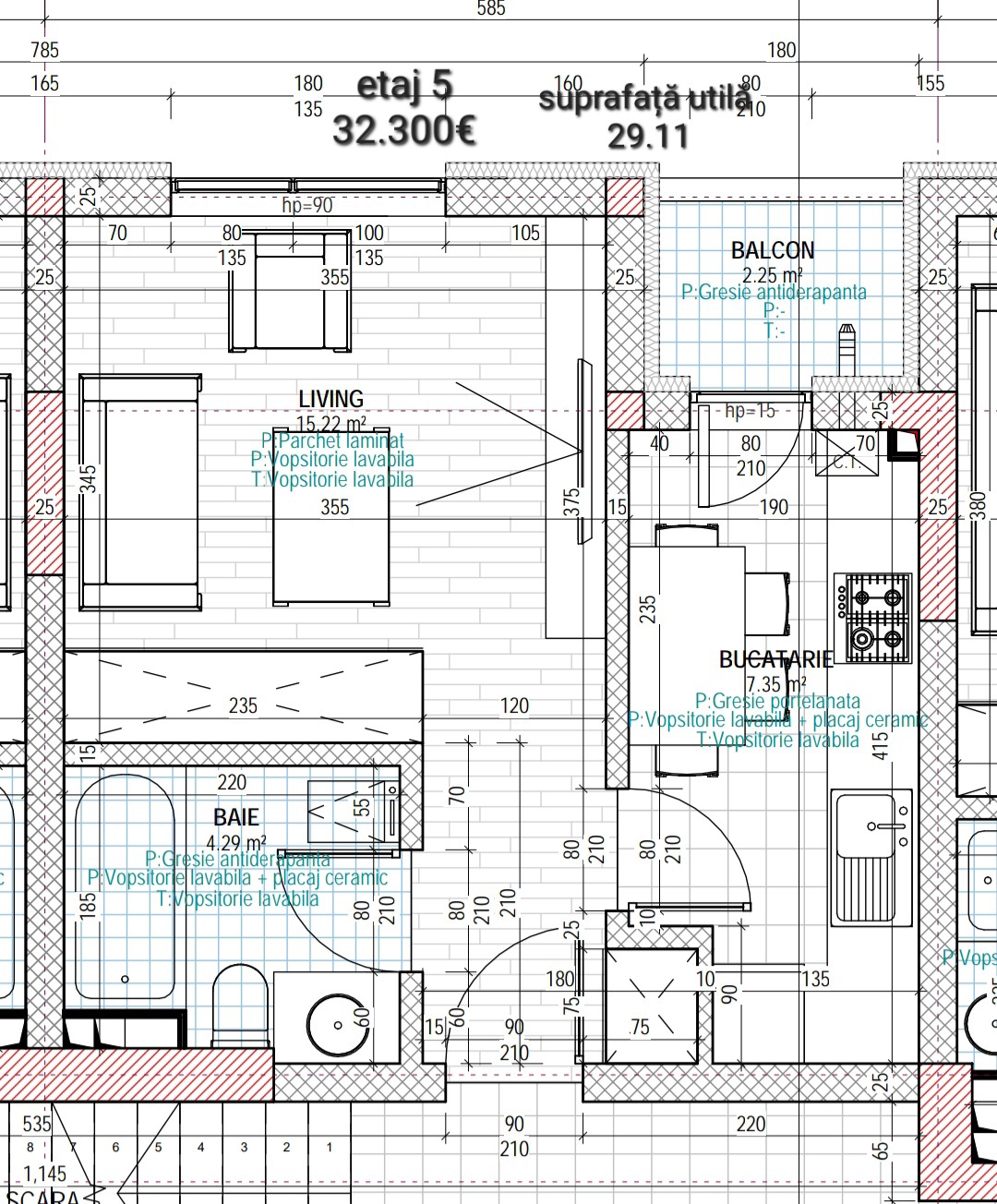 Va propunem spre vanzare Garsoniera decomandata, compusa din living, bucatarie, baie echipata cu obiecte sanitare, hol si balcon, cu o suprafata utila de 29.11 mp.