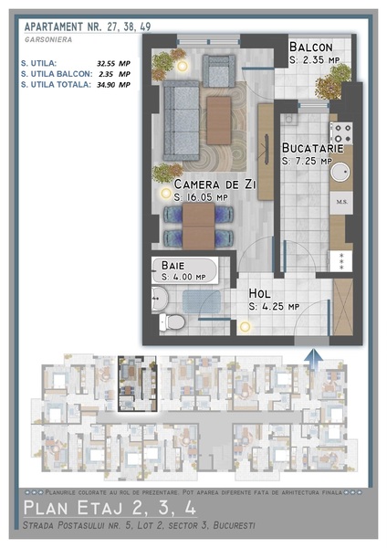 Garsoniera decomandata, suprafata utila 35 mp, aflata in sectorul 3 al Bucurestiului, intr-un Ansamblu Rezidential modern format din 5 blocuri, situat la doar 12- 14 minute de metrou 1 Decembrie 1918.