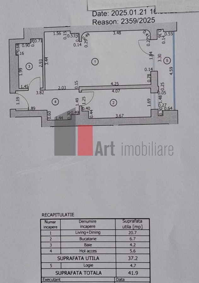 Suprafata totala de 41,9 mp din care logia este de 4,7 mp.