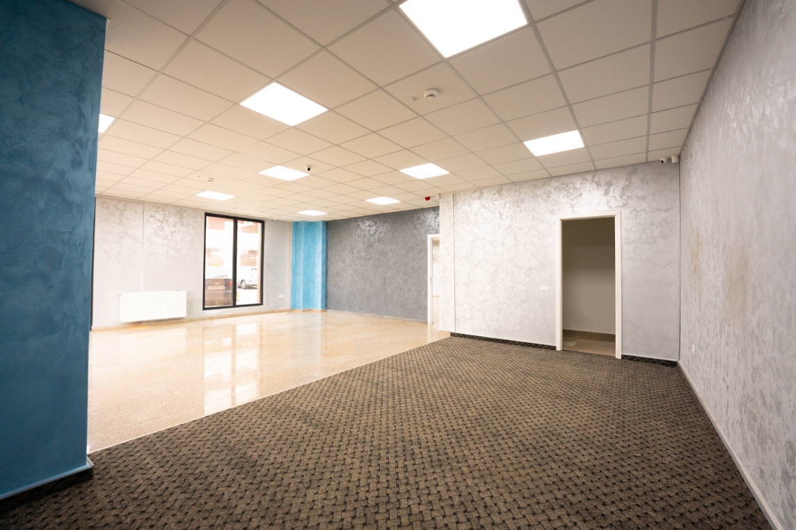 Acest spatiu comercial dispune de o vitrina ampla de 32 metri liniari si beneficiaza de 9 locuri de parcare, localizate in zona de acces.