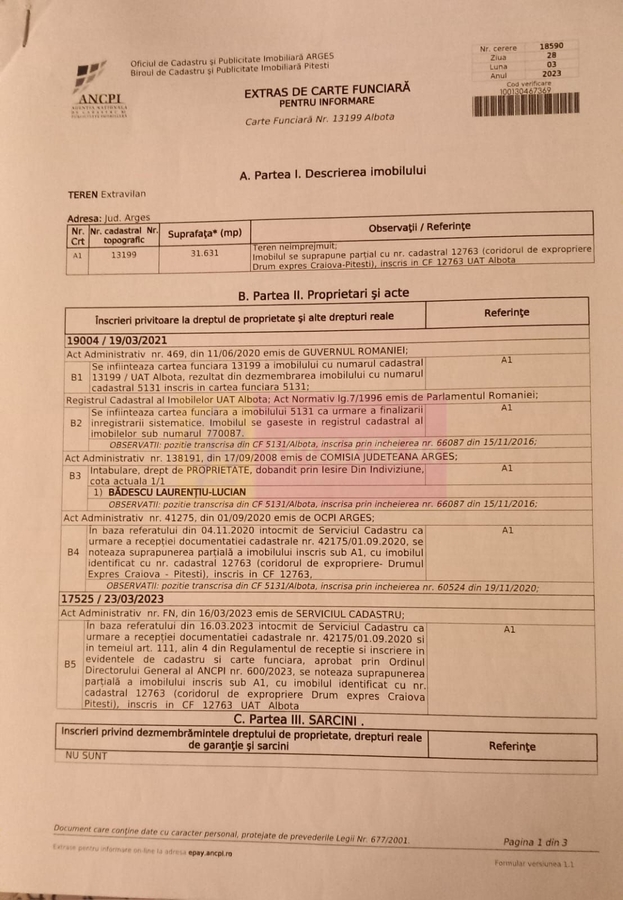 Documentatia cadastrala completa este disponibila pentru verificare.