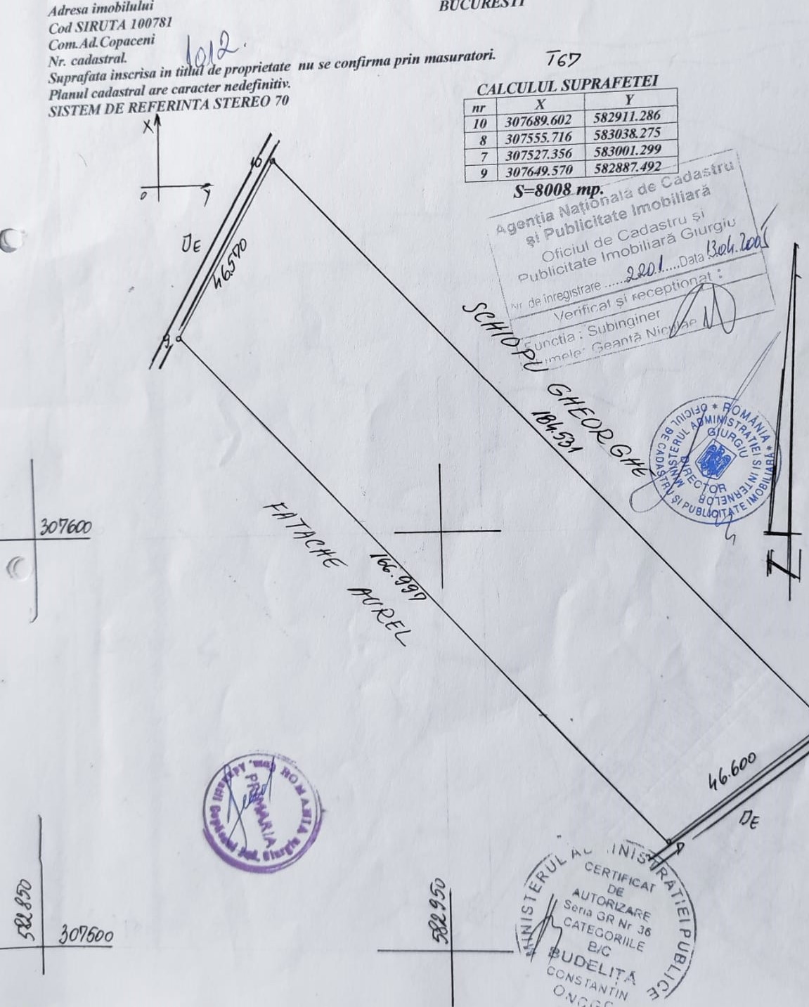 Vand teren 8.008 metri patrati in zona Pirlita comuna Adunati Copaceni, Ilfov.