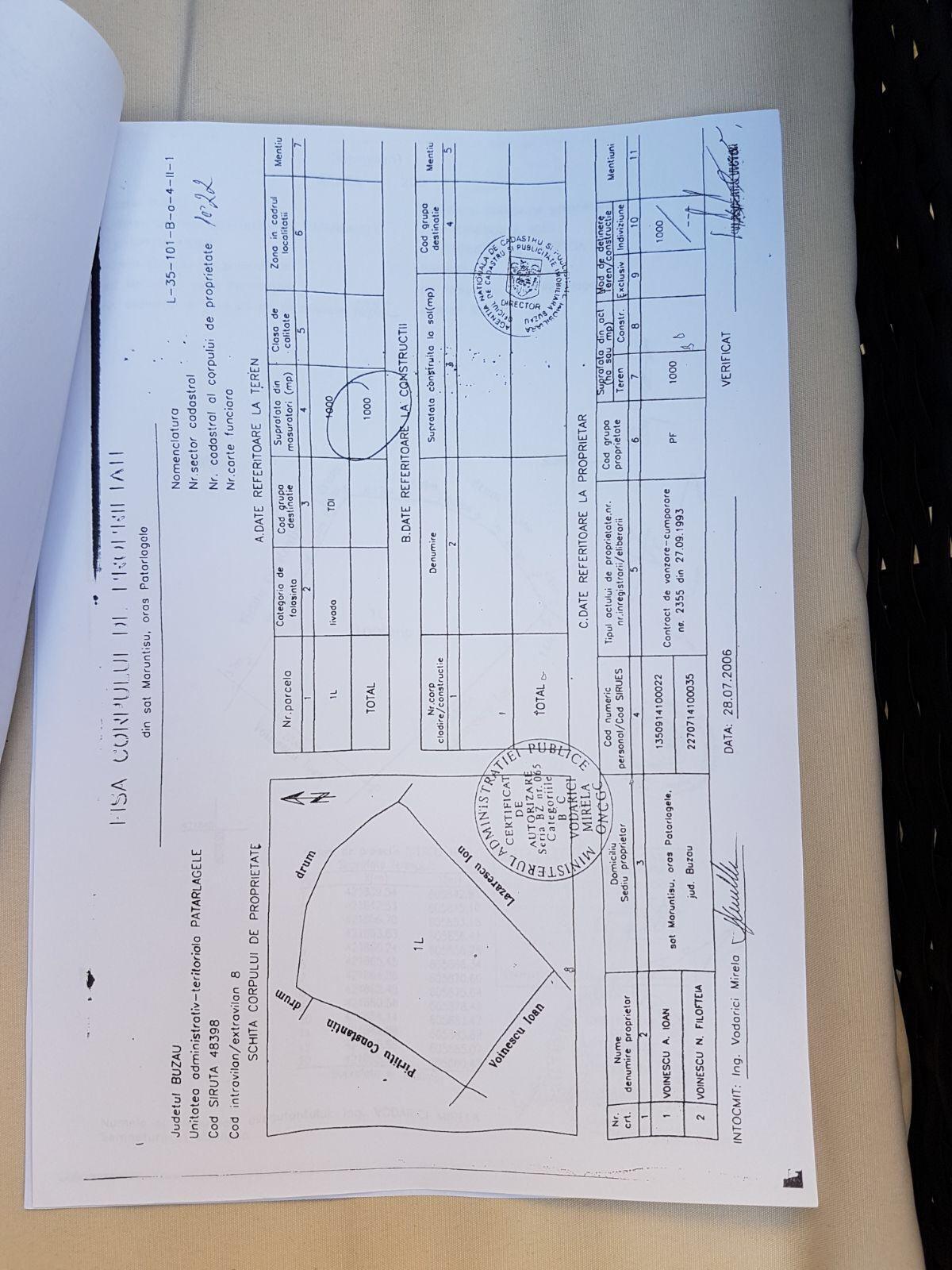 Vand teren intravilan zona Buzau oras Patarlagele sat maruntisu 1000 metri patrati detalii la telefon (Stefan)