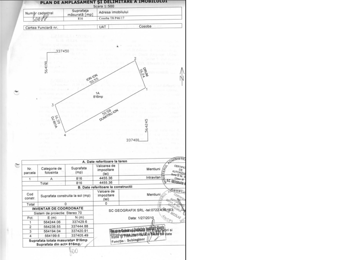 Detalii suplimentare: Acces drum asfaltat Cadastru Curent electric Intabulare Stradal