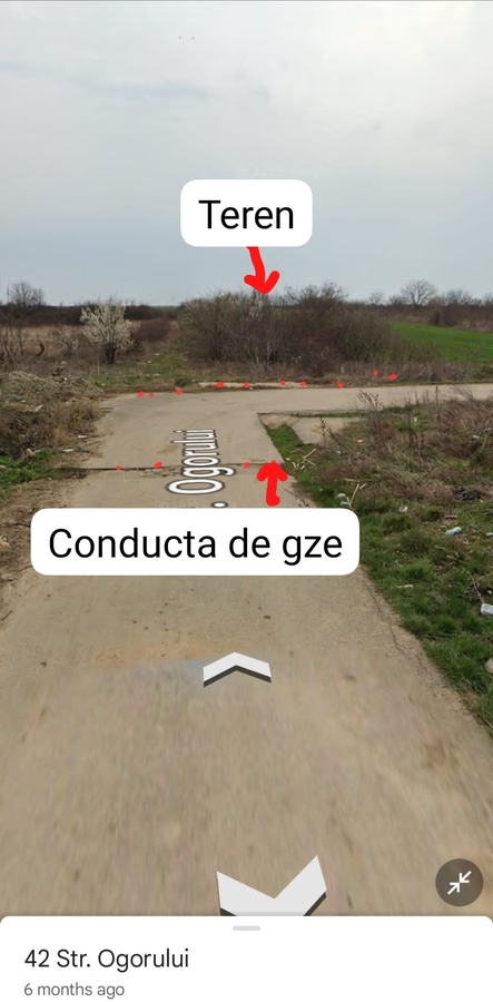 Drum asfaltat, conducta de gaze trece in fata terenului.