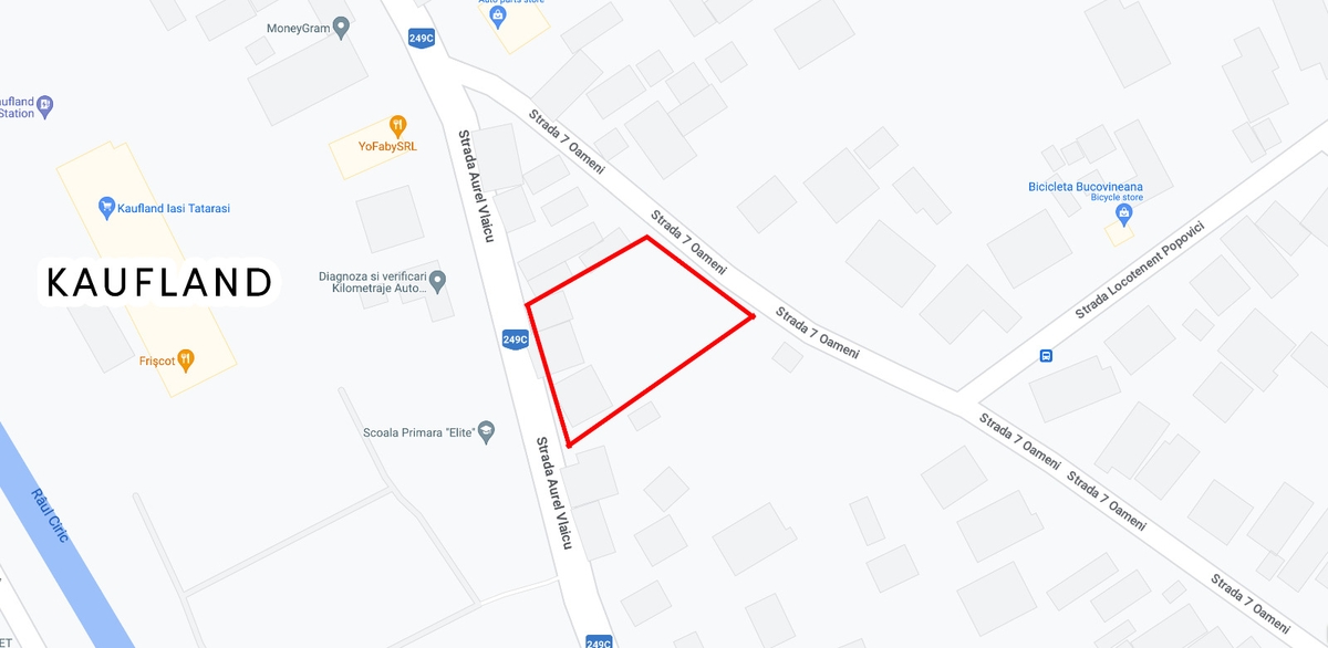 Vand teren intravilan de 1137 mp, cu o pozitie de vis, exact vizavi de Kaufland Tatarasi, la doar cateva minute de Palas si Aeroportul Iasi. Pe teren sunt doua case, potrivite pentru renovare sau pentru o noua constructie, in functie de planurile dumneavoastra. Zona ofera liniste, acces rapid la transport, scoli si magazine. Unic proprietar, fara intermediari.