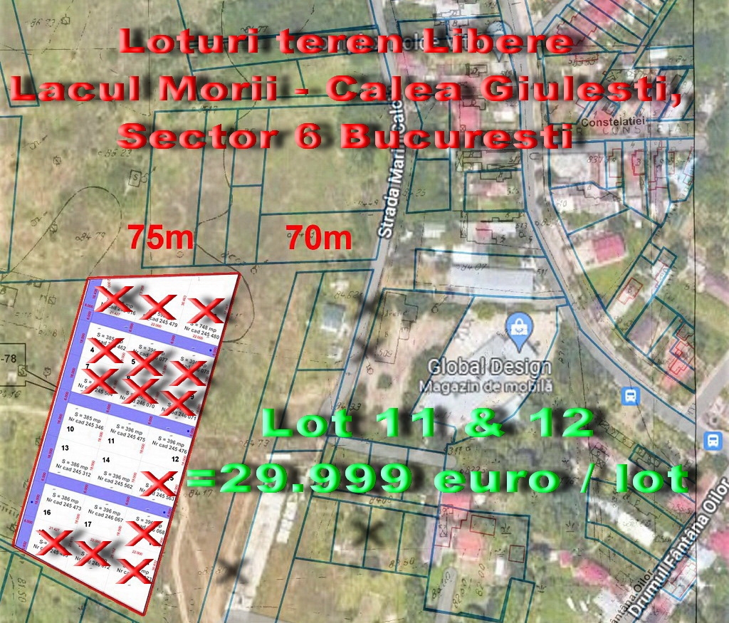 - Lot 11 & 12, fiecare avand 501mp (396mp + 96mp cota parte drum) = 29.999 euro.