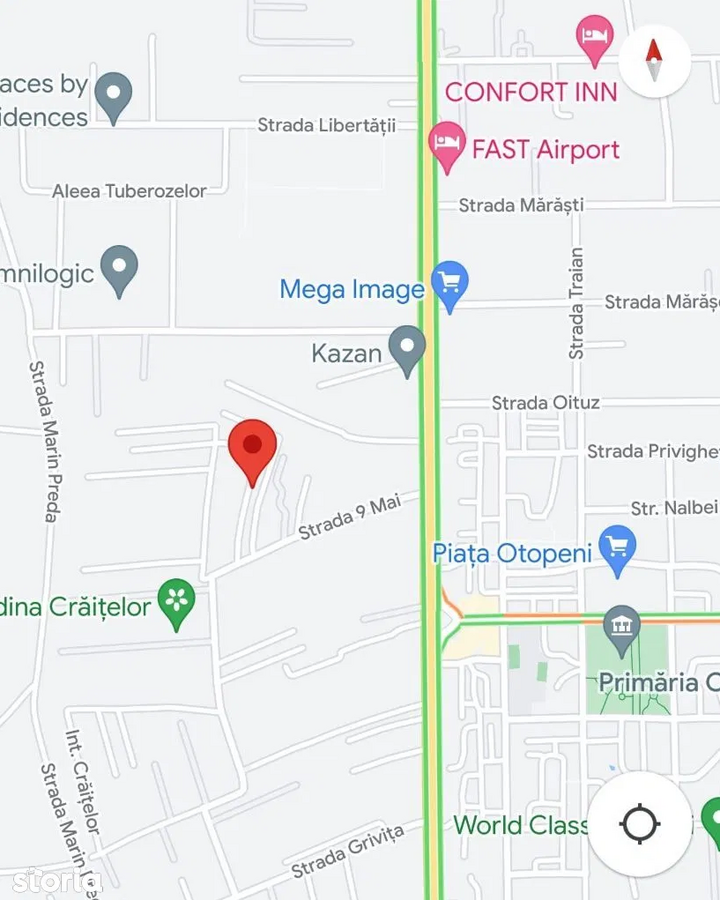 De vanzare teren ideal pentru casa personala, datorita zonei cu facilitati pentru familie sau pentru investitie (duplex) in Otopeni, pe strada 9 Mai, la numai cateva minute de mers pe jos de DN 1. Este singurul lot liber de pe o strada linistita, cu case noi, moderne, vecini faini. Accesul se face pe un drum de servitute, infundat in capat, ceea ce ajuta ca strada sa fie mai putin circulata.