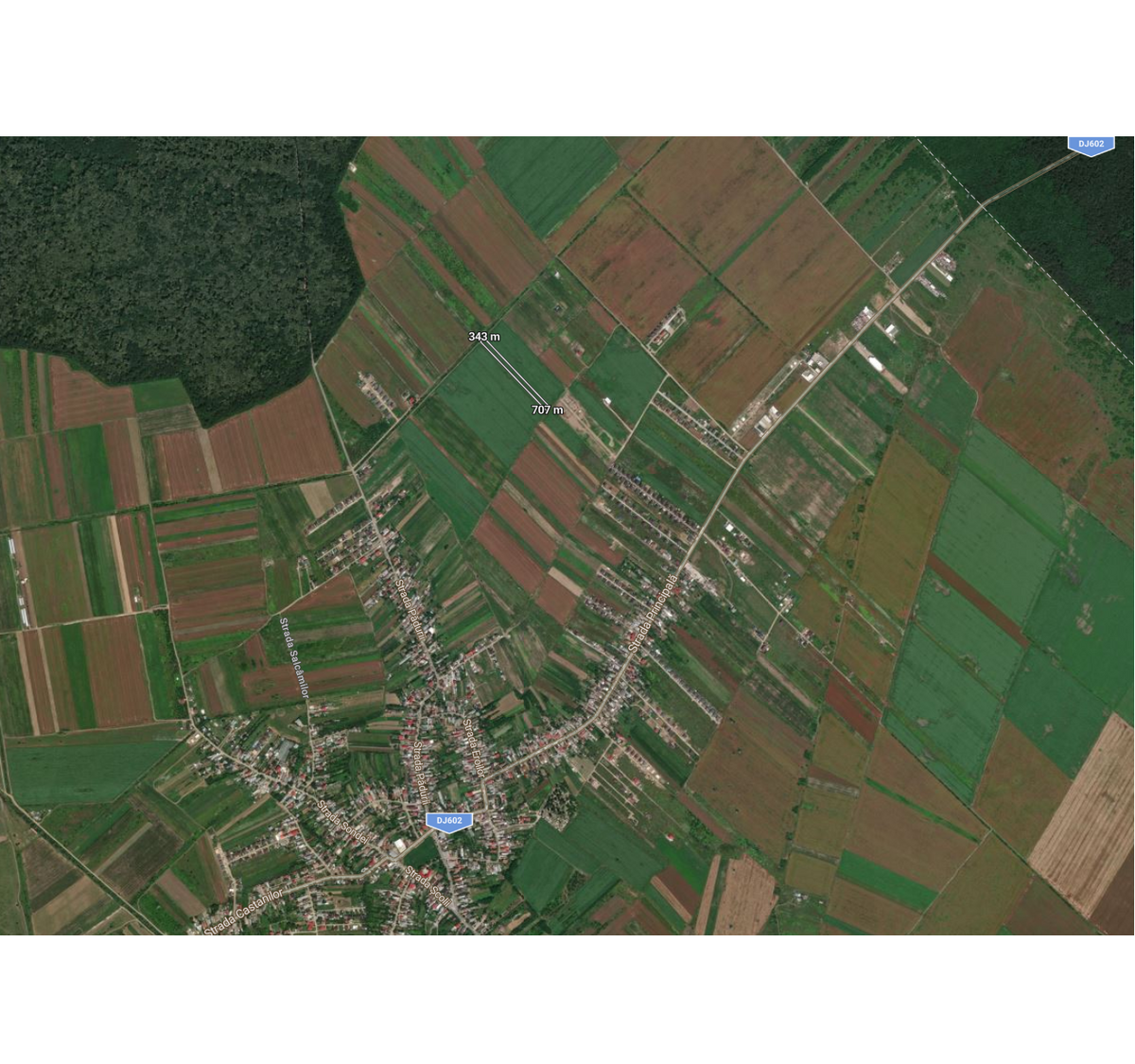 Terenul este amplasat la 800m de soseaua principala. Utilitatile: gaz si curent sunt la aproximativ 500m de teren. Terenul este extravilan arabil.