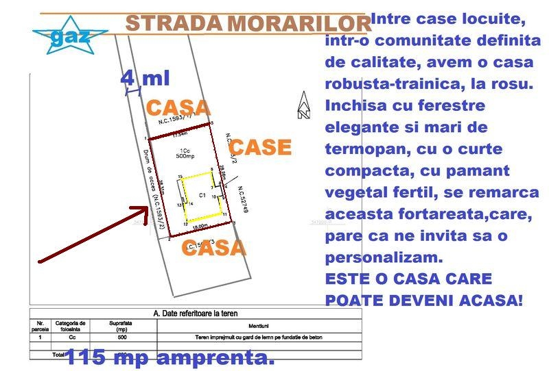 casa trainica robusta, aproape de Otopeni si Baneasa, aflata intre case locuite. P+Etaj, SU=180 mp, amprenta 115 mp pe un teren total pe 500 mp. Incaperi luminoase: living, 3 dormitoare, 3 bai, bucatarie