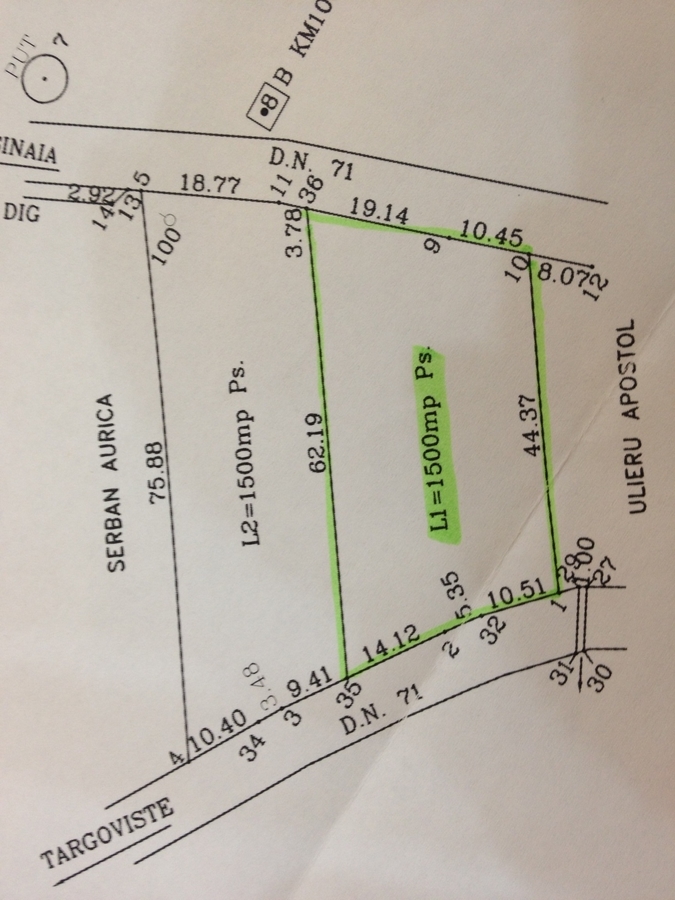 vand teren intravilan zona Sinaia - Cota 1000, Moroeni, Paduchiosu, 1500 mp, 30x50 m, intravilan construibil, dubla-deschidere 30 m la DN 71 Terenul apartine de Moroieni, e la limita judetelor DB cu PH,