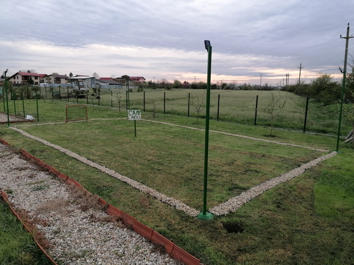 Terenul este inchis cu gard din plase ondulate cu bordura de ciment si porti din rectangulara.
