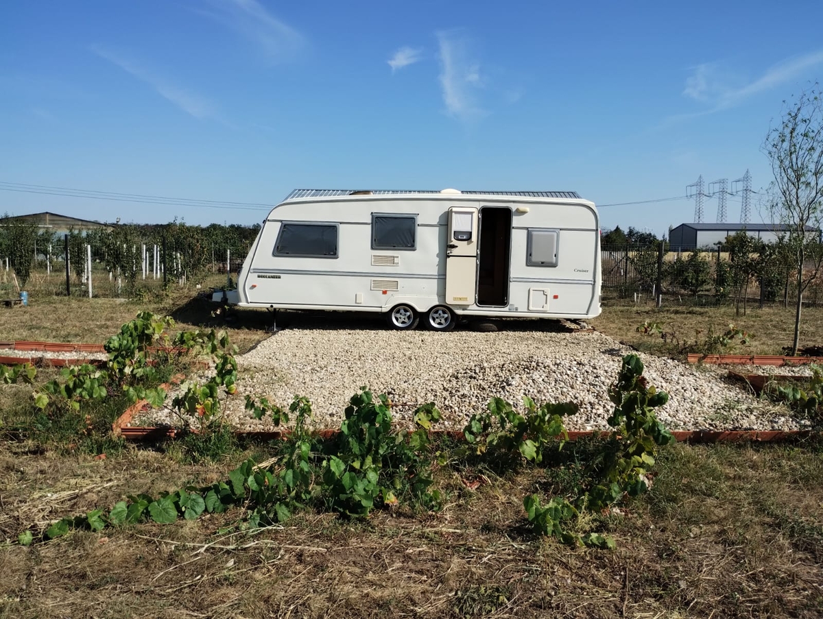 In pret este inclusa si rulota, din anul 1997, cu 4 locului de dormit, baie mare cu toate functionale, suprafata interioara este de 18mp, are protectie facuta pentru interperii.