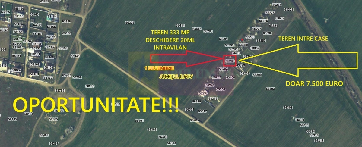 Oportunitate. Se vinde o parcela de teren de 333mp intravilan, TEREN PERFECT pentru constructie casa., Este deja destelenit de actualul proprietar si pregatit pentru a incepe lucrarile. Terenul este langa alte constructii rezidentiale, la 10-15 minute de Bucuresti. Accesul la teren se face dinspre si spre Bucuresti prin DN5- Soseaua Giurgiului, cea mai facila intrare in oras. Deschiderea este de 20 ml pe o adancime de 16 ml. Padurea se afla la 150ml de teren iar DN5- Soseaua Giurgiului este la 700ml de teren. La mica distanta de teren se afla si accesul spre Autostrada A0 . Zona se afla intr-o dezvoltare accentuata, la mica distanta de teren sunt date spre aprobare mai multe proiecte rezidentiale de anvergura , in apropiere se afla o baza sportiva Livone (tenis) si un teren de fotbal. Centrul comercial Lidl este la 1km de teren. Urbanism-ul in zona este de P+2 cu 2 retras (sau P+1+M), C.U.T.-ul este de 1 si P.O.T.-ul este de 35%. Proprietarul a achizitionat terenul la un pret mai mare dar este fortat de imprejurari sa vanda rapid, de aceea este promovat la acest pret. Pentru detalii si informatii nu ezitati sa ma contactati. Daniel, Apulum94.