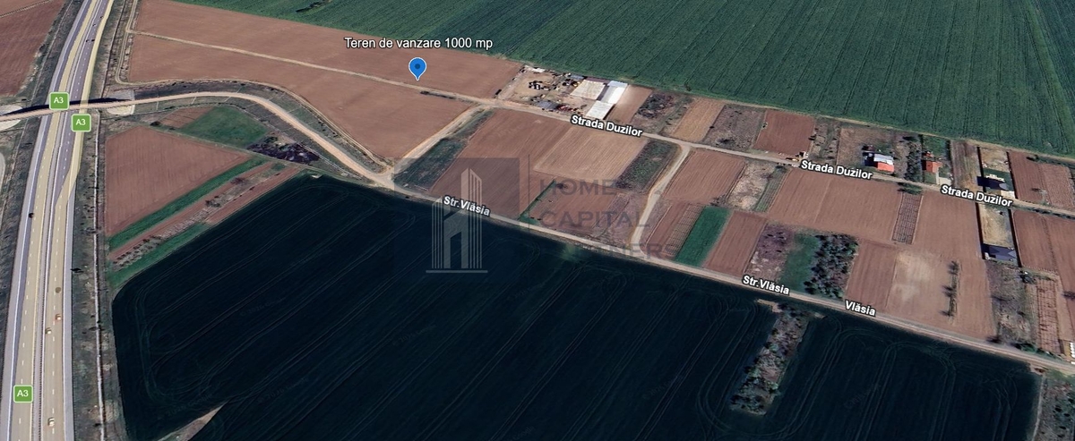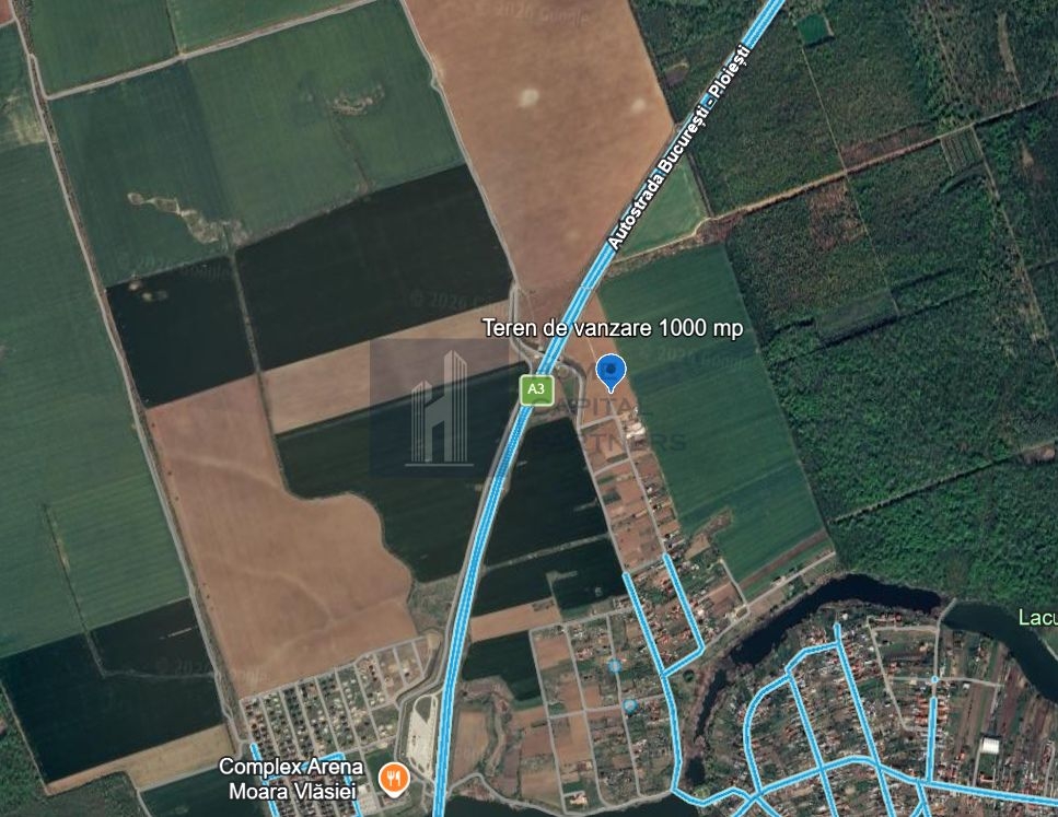 Terenul extravilan-arabil, avand suprafata masurata si din acte de 1000 mp, se afla pe teritoriul satului Pascani, comuna Moara Vlasiei, in prelungitrea strazii Duzilor, cu iesire rapida catre Autostrada A3 Bucuresti-Ploiesti.
