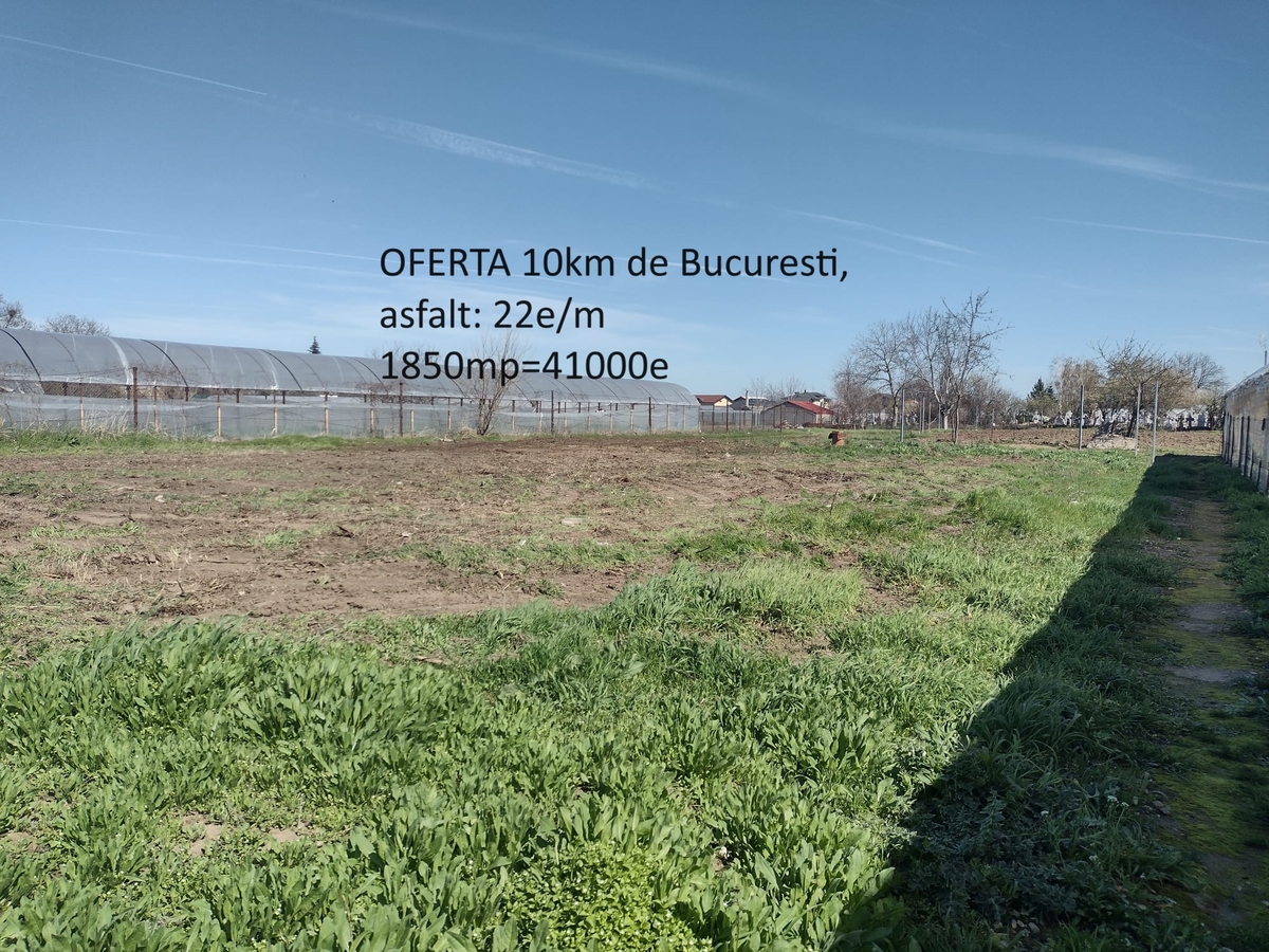 Vand Teren intravilan ieftin 25E/m negociabil, construibil, aflat imediat dupa comuna Berceni, in Vidra Ilfov la 10km de Bucuresti, de statia de metrou Tudor Arghezi. Suprafata 1850m,deschidere 25m, iesire la strada asfaltata in zona de case, in apropiere: magazine, scoala si gradinita.