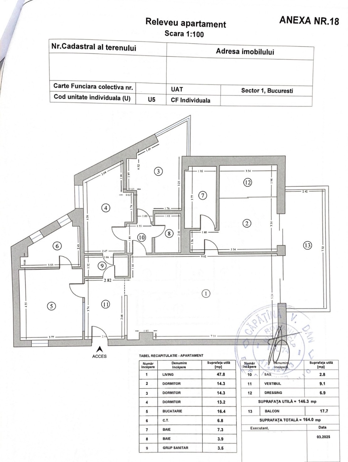 Apartamentul are o suprafata utila de 146 mp+ 1 balcon de 18 mp ( Suprafata utila totala 164 mp ).